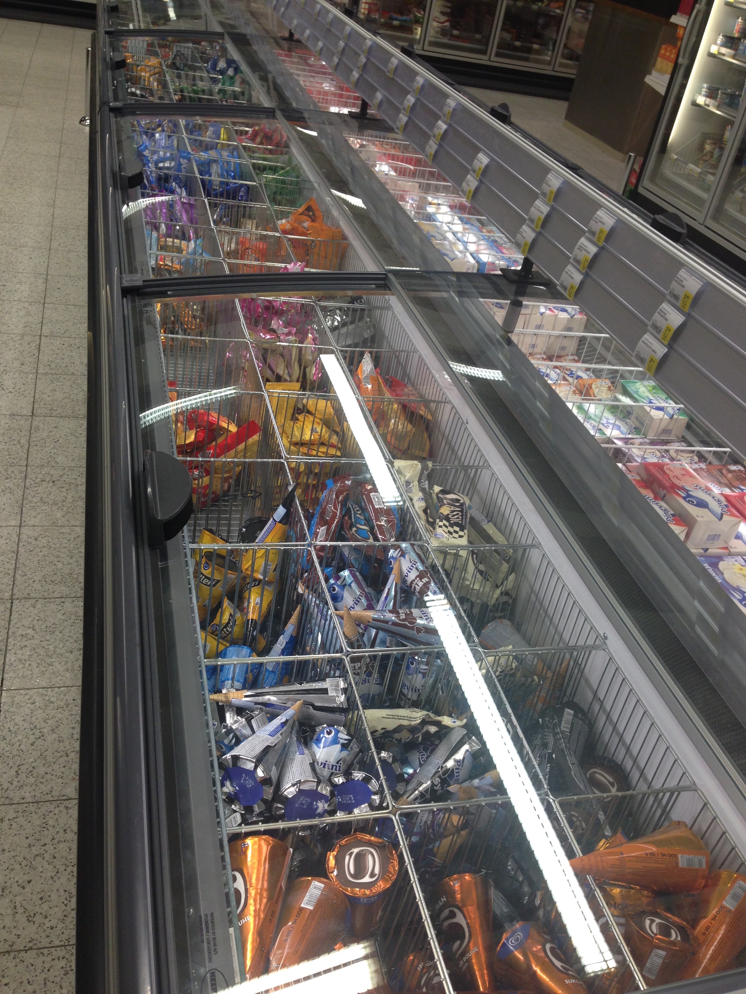 Some things I was prepared to experience here in Finland, such as a plethora of smoked fish, sausages of unusual meats (like reindeer and wild boar), and shelves of fermented dairy products (NOM). But some things were delightful surprises, for example, there is a lot of ice cream in Finland, and I mean A LOT, which is mielenkiintoista to me given the fact that it is such a cold climate. Finnish love of ice cream novelties knows no bounds, and these ice cream novelties are truly cream-y. They bear little resemblance to the icy cones you might find in the Good Humor container in a U.S. gas station that seem to have been exposed to a repeated cycle of melt and freezer burn. In the Finnish groceries, there are rows upon rows of these amazing ice cream novelties!