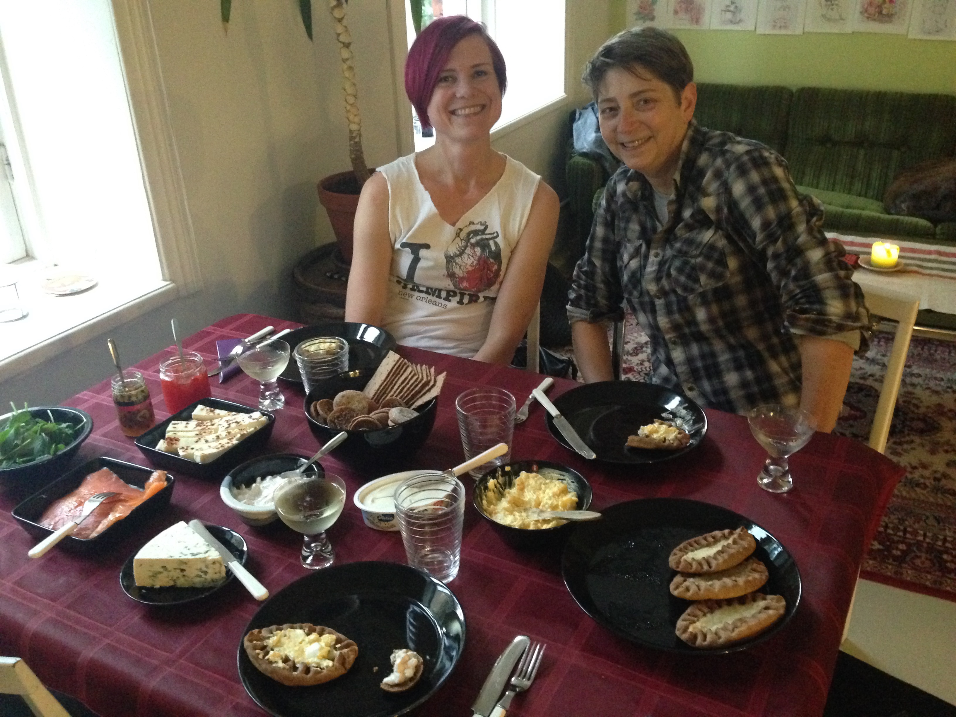 And look at this amazing spread prepared by a new colleague, that included smoked salmon, rye crisps, a creamy, dill archipelago fish spread (something like this), Karelian pies and homemade egg butter (to be discussed later in this post), and her mother’s homemade red pepper jelly.