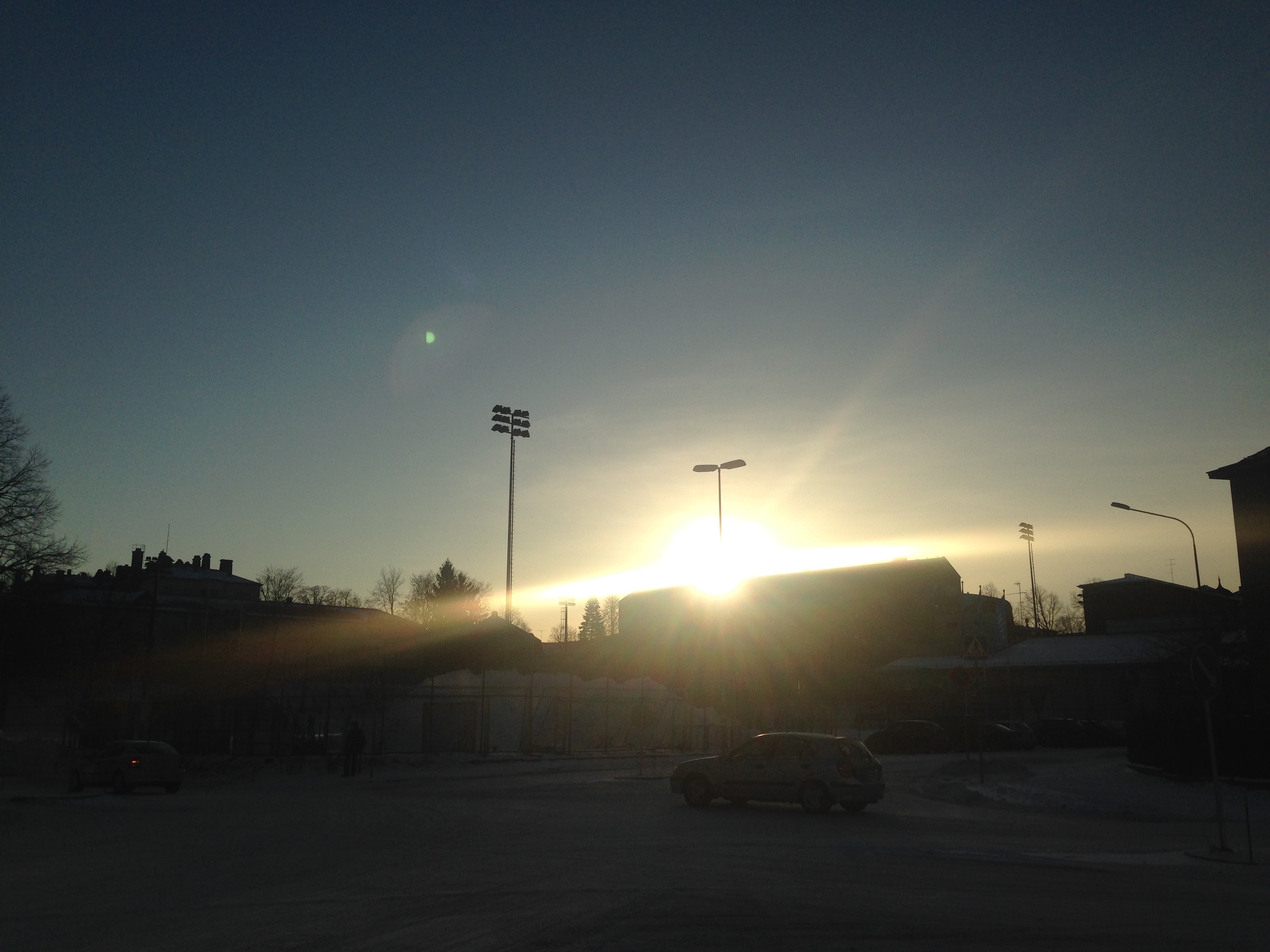 The most important thing I would tell anyone about surviving winter in Finland has nothing to do with sun lamps or drinking, it has to do with personal safety, as in, not dying on icy sidewalks. You must ENTIRELY CHANGE THE WAY YOU WALK. This isn’t like in the U.S., where you might hit an icy patch on a sidewalk that they missed with the snow melt chemical salts, because in Finland they don’t use chemical salts. I repeat, there are NO chemical salts being used. NOTHING is being used to melt the ice. There is this sort of gravel that is put down that has minimal effect, but for the most part it’s like walking on a skating rink. I went down hard during the first icy day and that was a warning bell for me.