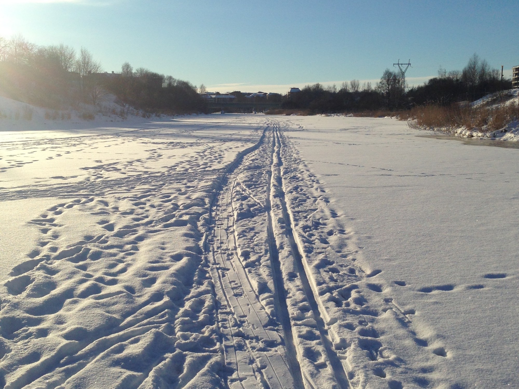 Yesterday after seeing multiple foot prints and ski tracks going right down the middle of the river, I finally got up the courage to do it myself.